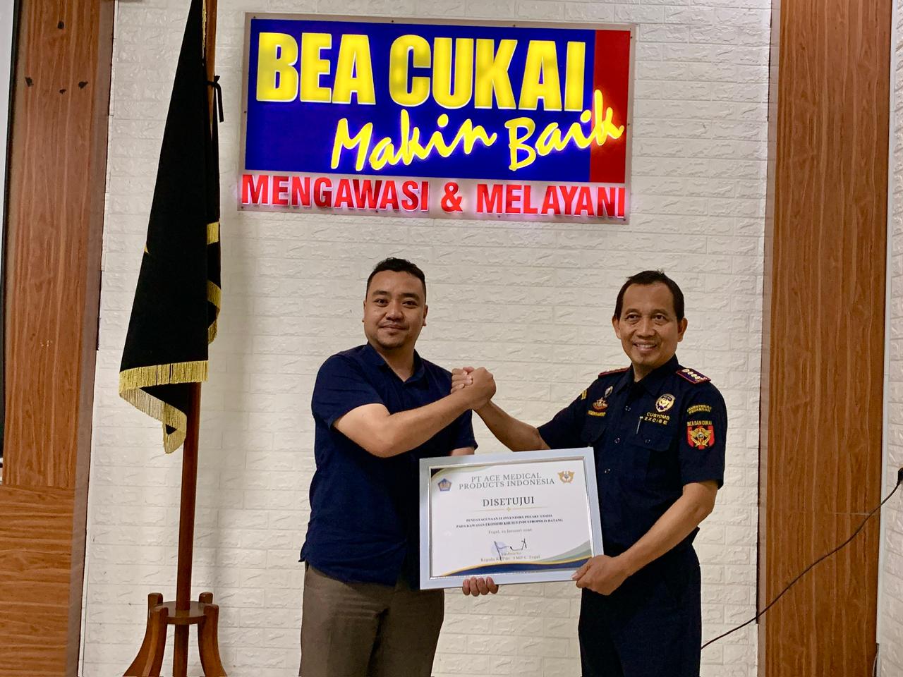 PT Ace Medical Products Indonesia resmi memperoleh persetujuan pendayagunaan sistem IT Inventory Kawasan Ekonomi Khusus (KEK) dari Kantor Layanan Bea Cukai Tegal pada 29 Januari 20...